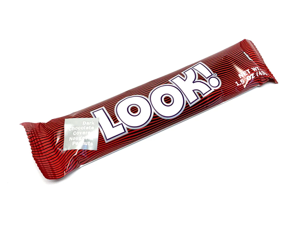 Indulge in the quirky and delicious Look! candy bar! Made with high-quality ingredients, this 1.375 oz bar will satisfy your cravings and bring a smile to your face. Whether you're on-the-go or just need a sweet pick-me-up, Look! has got you covered. Give it a try and see for yourself!